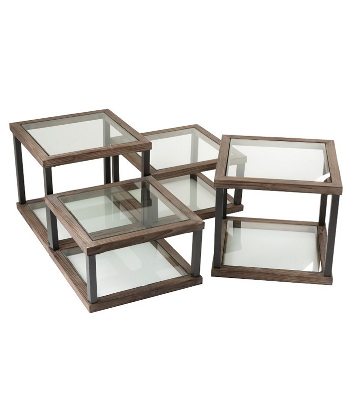 ΤΡΑΠΕΖΙ μεγάλο ΣΑΛΟΝΙΟΥ ΞΥΛΟ/ΓΥΑΛΙ ΚΑΦΕ (51x51x46cm) 20-91-109