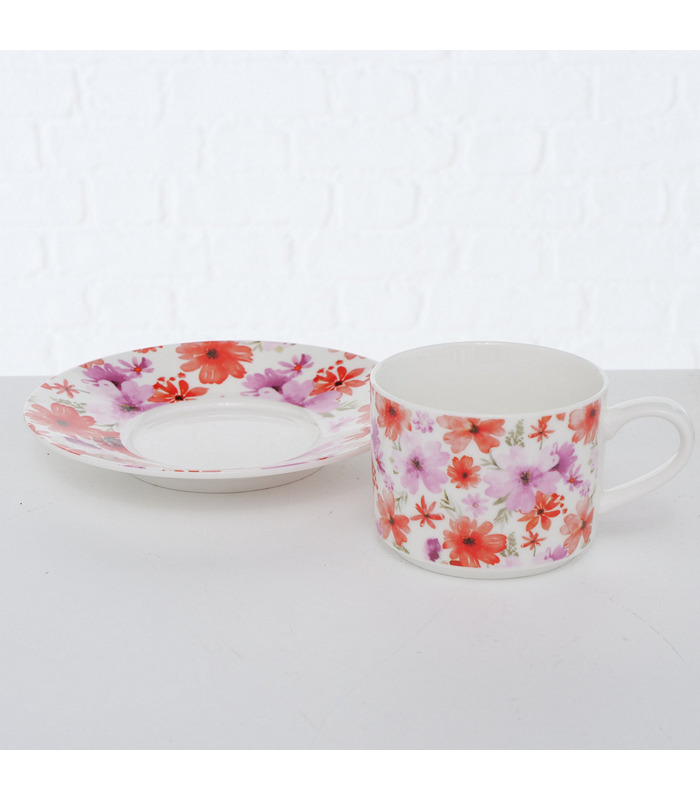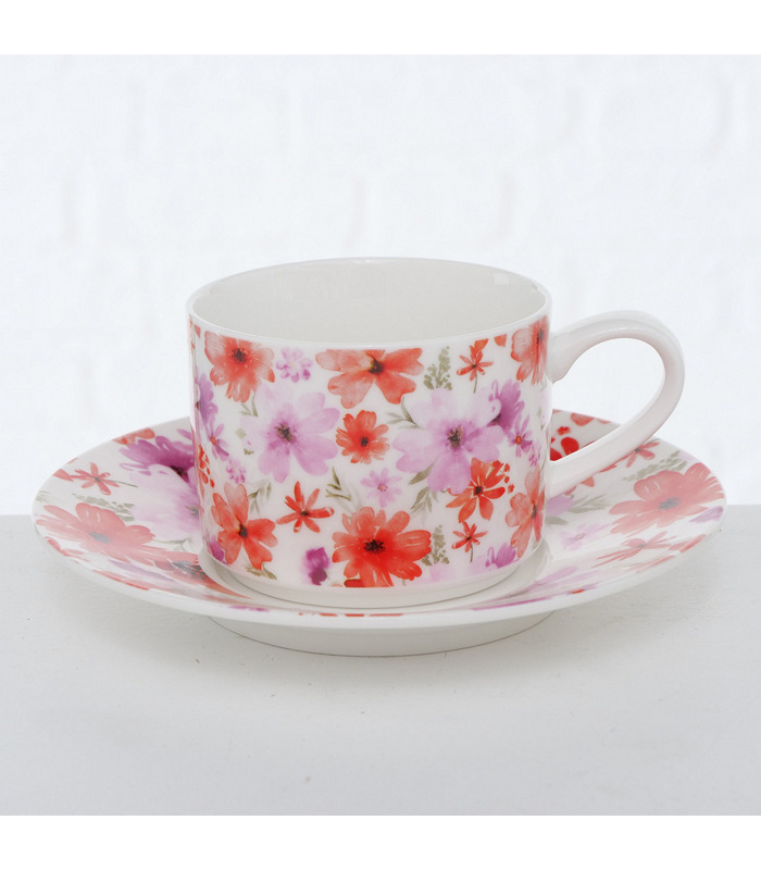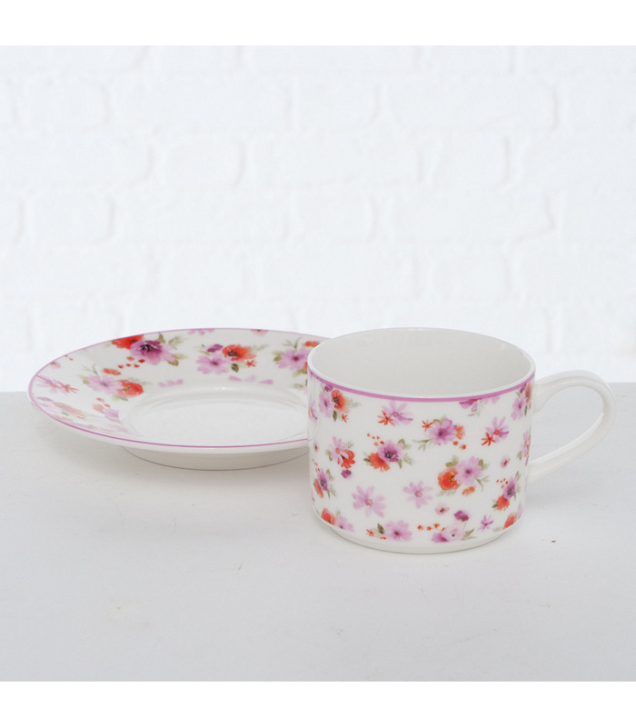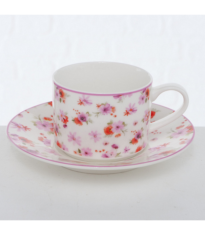 ΦΛΥΤΖΑΝΙ ΜΕ ΠΙΑΤΑΚΙ 2/ASS ΣΧΕΔΙΟ ΑΝΘΗ ΡΟΖ/ΛΕΥΚΟ Rosella Dishwasher safe D16 H7cm New Bone ΠΟΡΣΕΛΑΝΗ