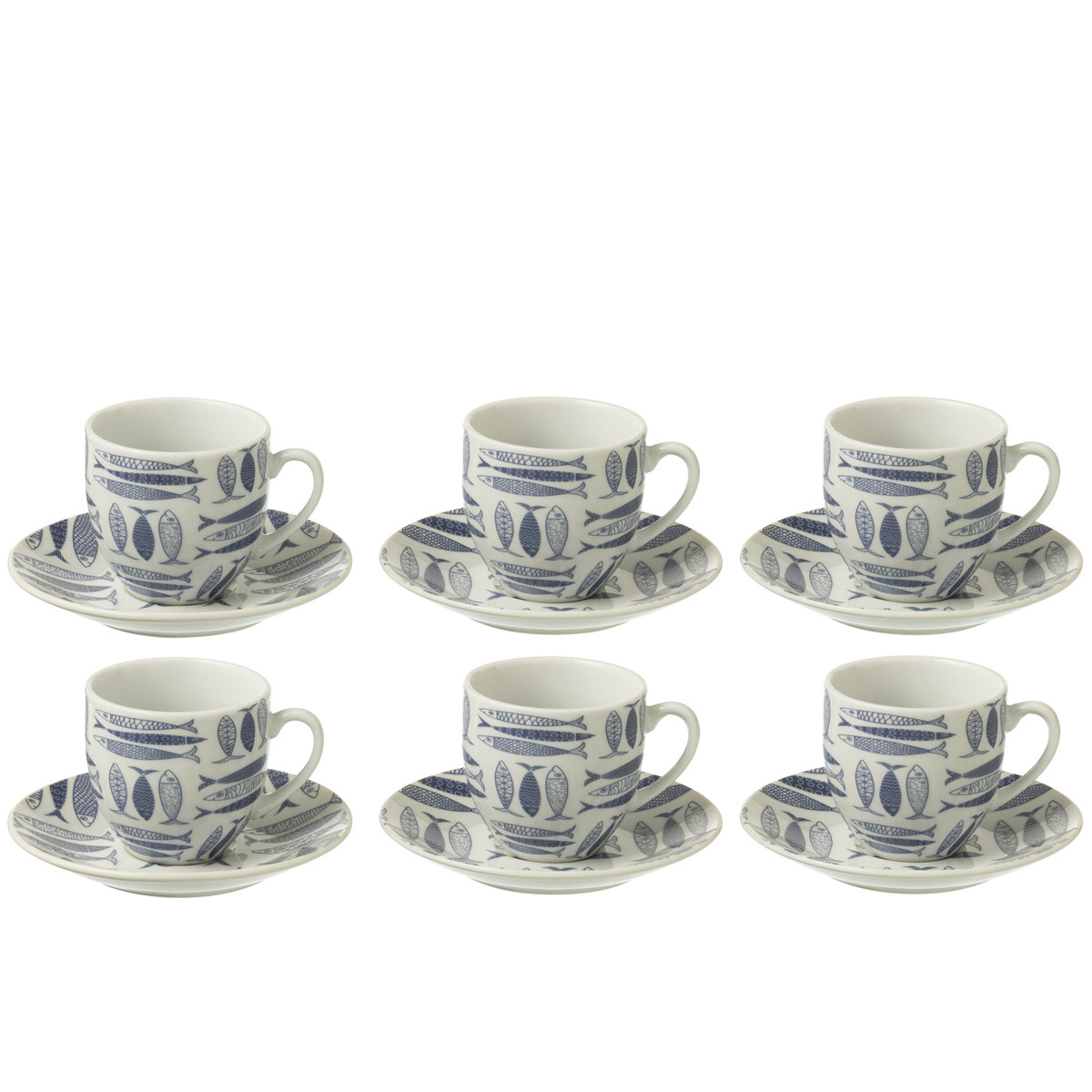 ΦΛΥΤΖΑΝΙ/ΠΙΑΤΑΚΙ 6 τμχ ΜΕ ΨΑΡΙΑ FISH ΚΕΡΑΜΙΚΟ ΣΚΟΥΡΟ ΜΠΛΕ (5.1x3x5.5cm)