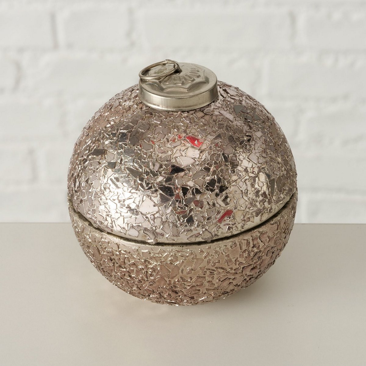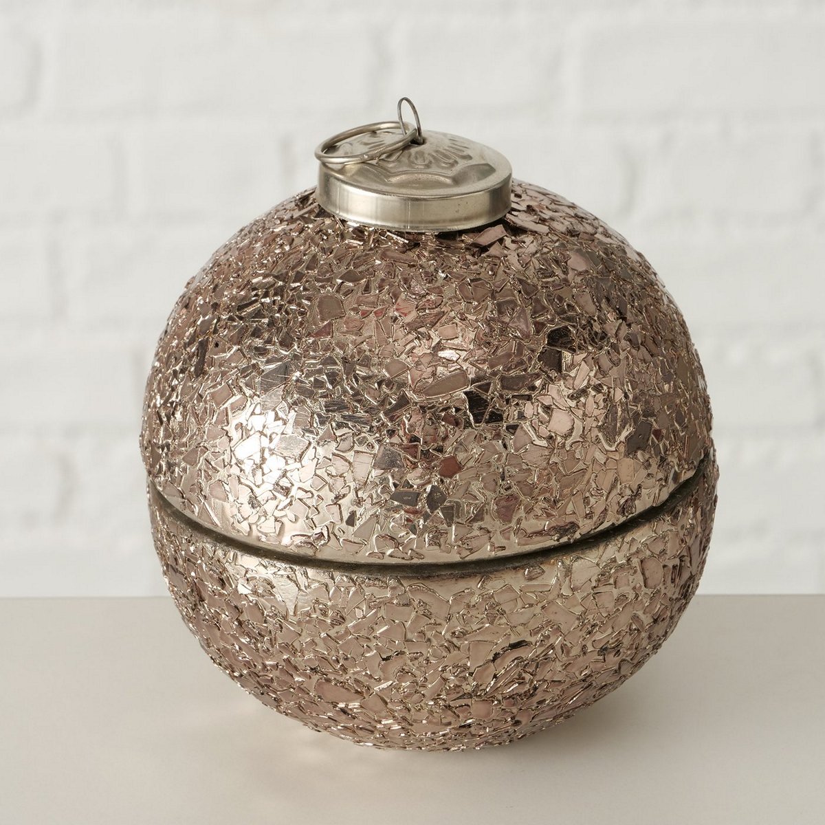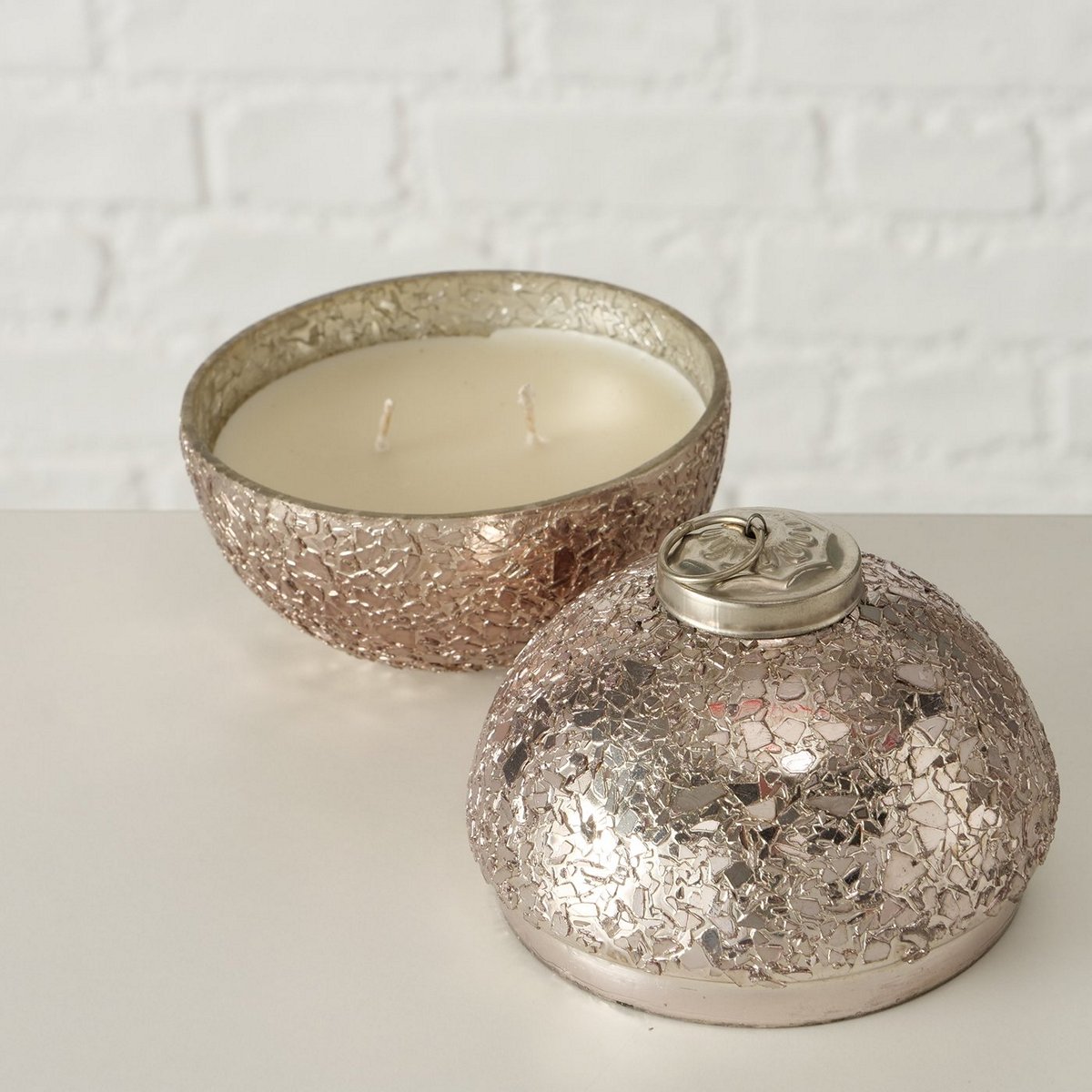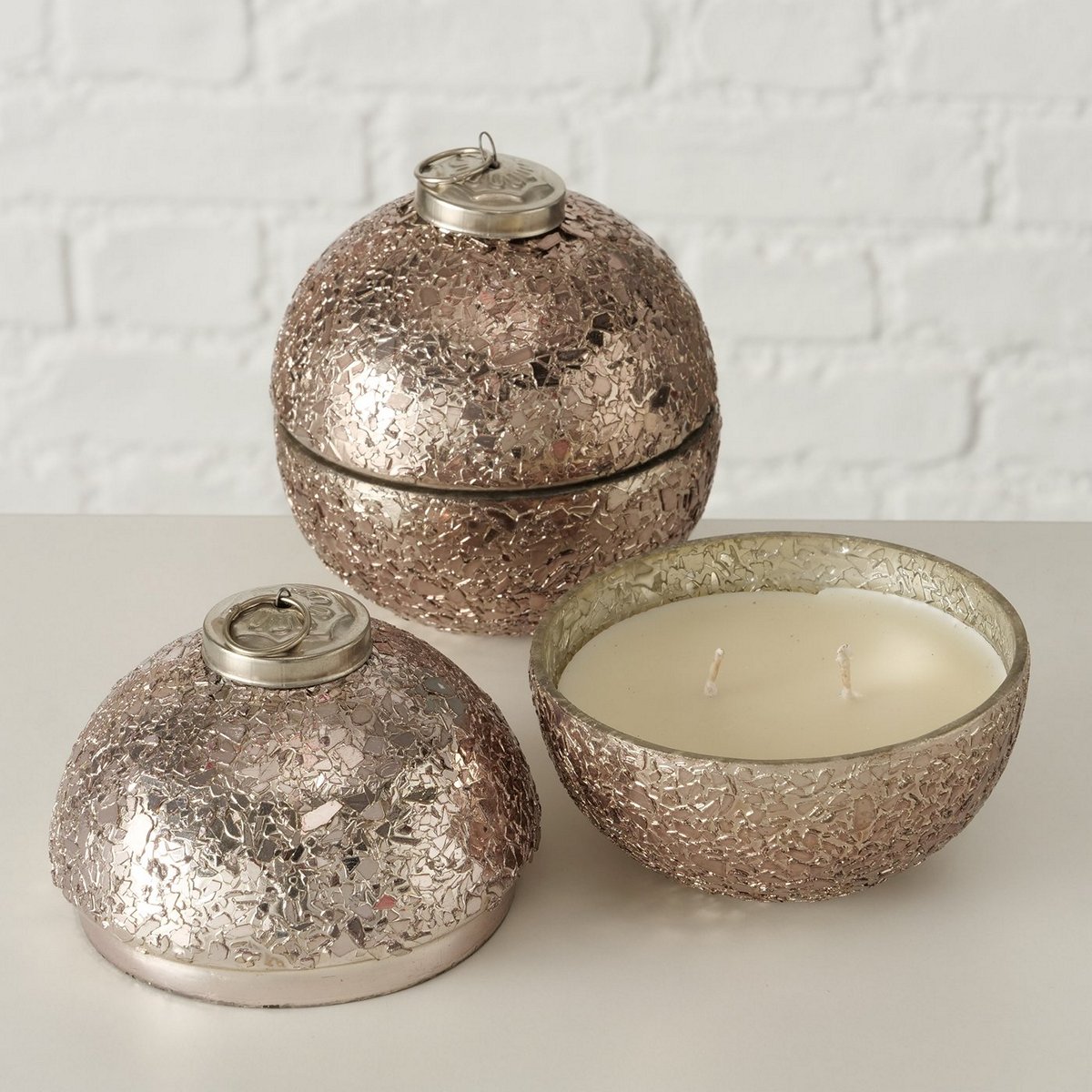 Candle pot Twinky, 2 ass., Ball, H 11,00 cm, D 10,00 cm, Glass laquered, Paraffin, Wax mixed materials taupe